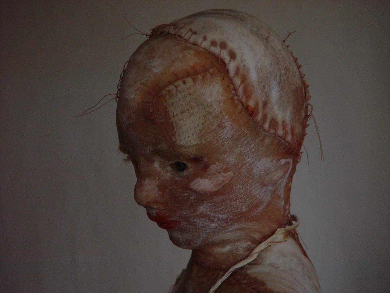 Sewing work with preserved animal hide