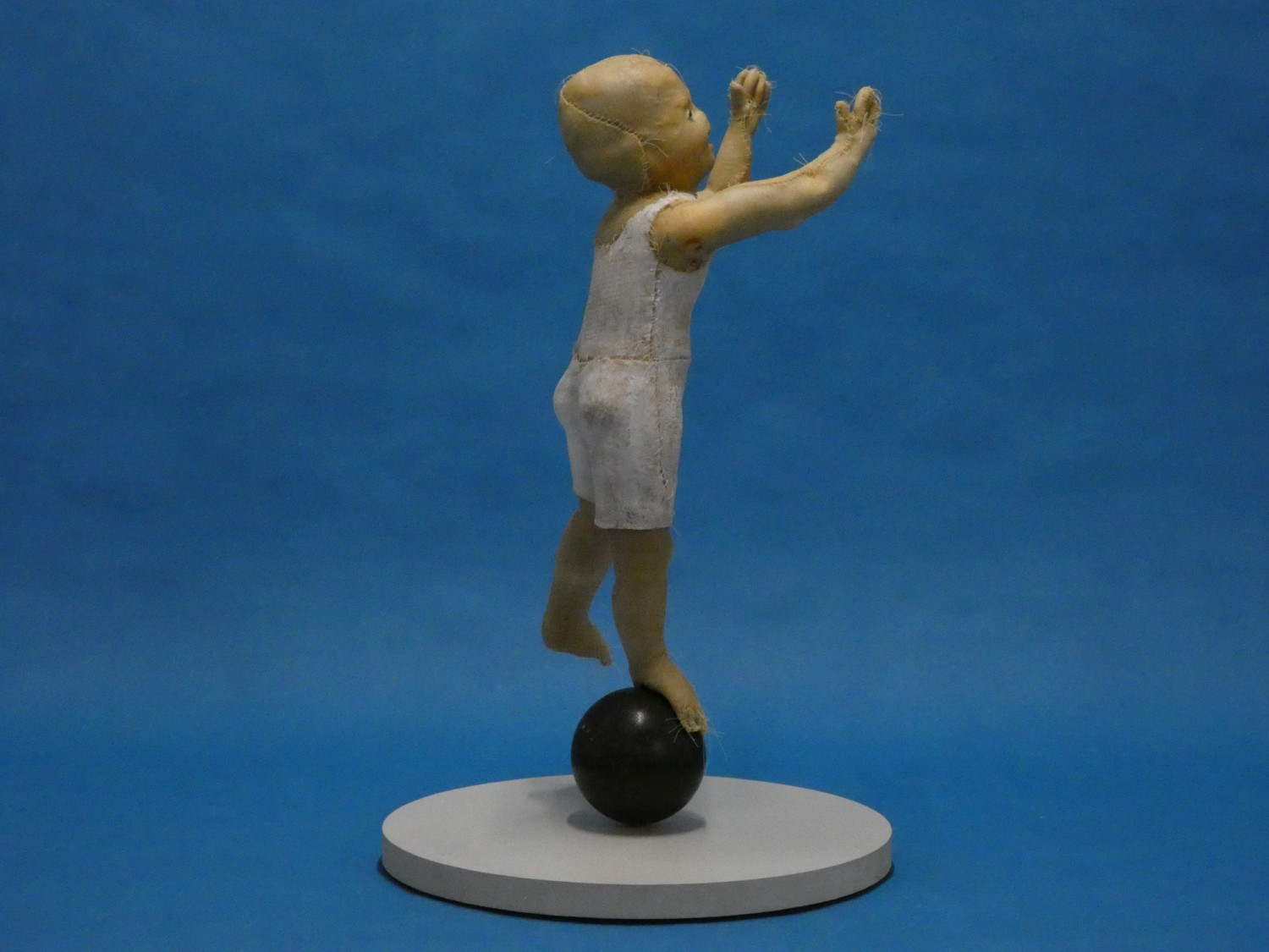 Sewing work with preserved animal hide, bowling ball